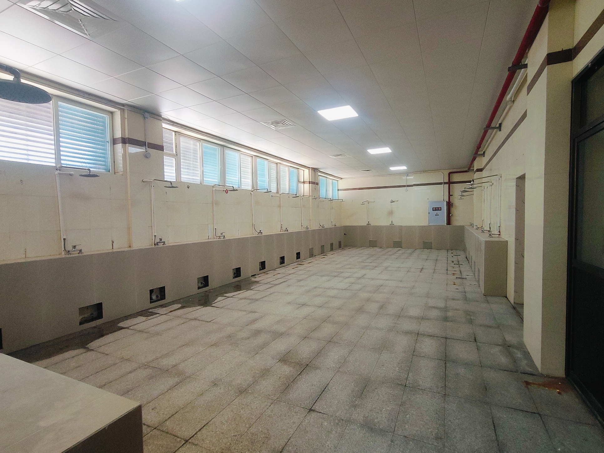 雅努思公司展陳事業部施工人員以嚴謹認真的態度對待此次裝修改造項目!在本次項目中我們對御林軍游泳館的玻璃幕墻、門頭廣告、門廳進行升級改造,男、女更衣室以及對淋浴間整體管線鋪設!原鐵路游泳館建于1995年12月距今30余年,因時間較久淋浴間設施老化已無法滿足現在人們的需求,如管道銹蝕、易積水所以我們對其整個進行管道重新鋪設并做好防水功能!