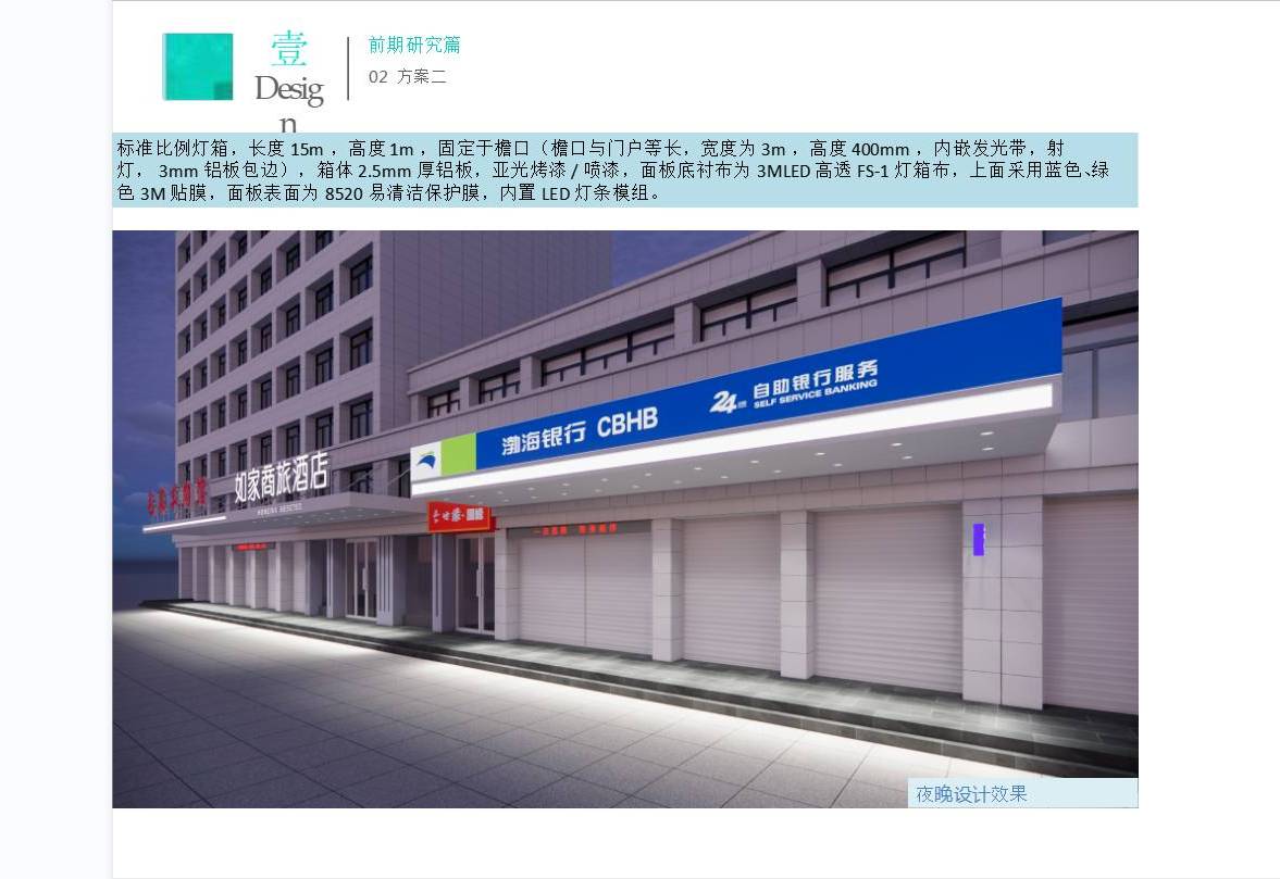 采用標準比例燈箱,內嵌發光帶,射燈,3mm鋁板包邊,箱體2.5mm厚鋁板,亞光烤漆/噴漆,面板底襯布為3MLED高透FS-1燈箱布,上面采用藍色、綠色3M貼膜,面板表面為8520易清潔保護膜,內置LED燈條模組。